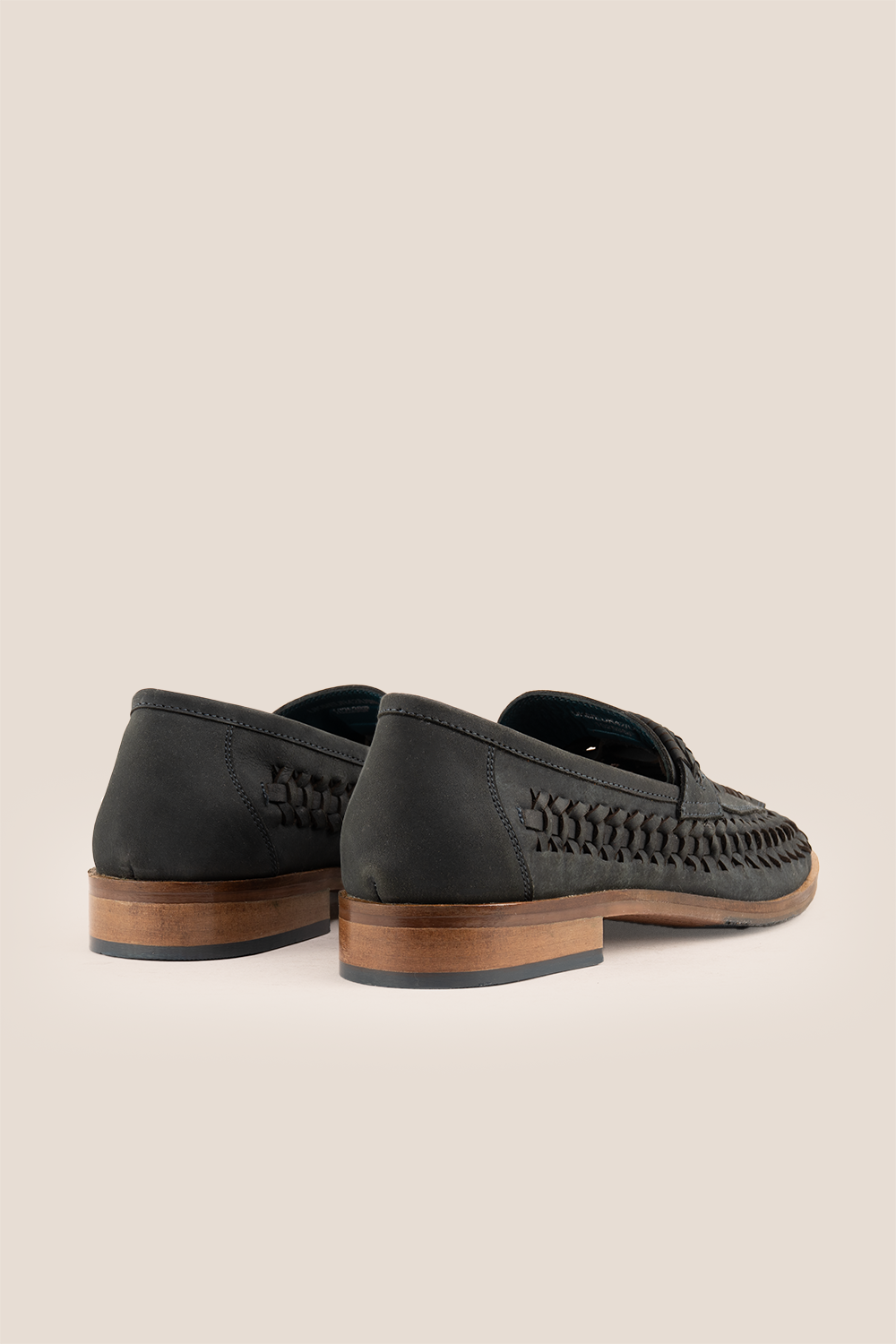 Finley navy woven leather loafers for men, featuring premium craftsmanship, intricate weave detail, and a refined, durable finish