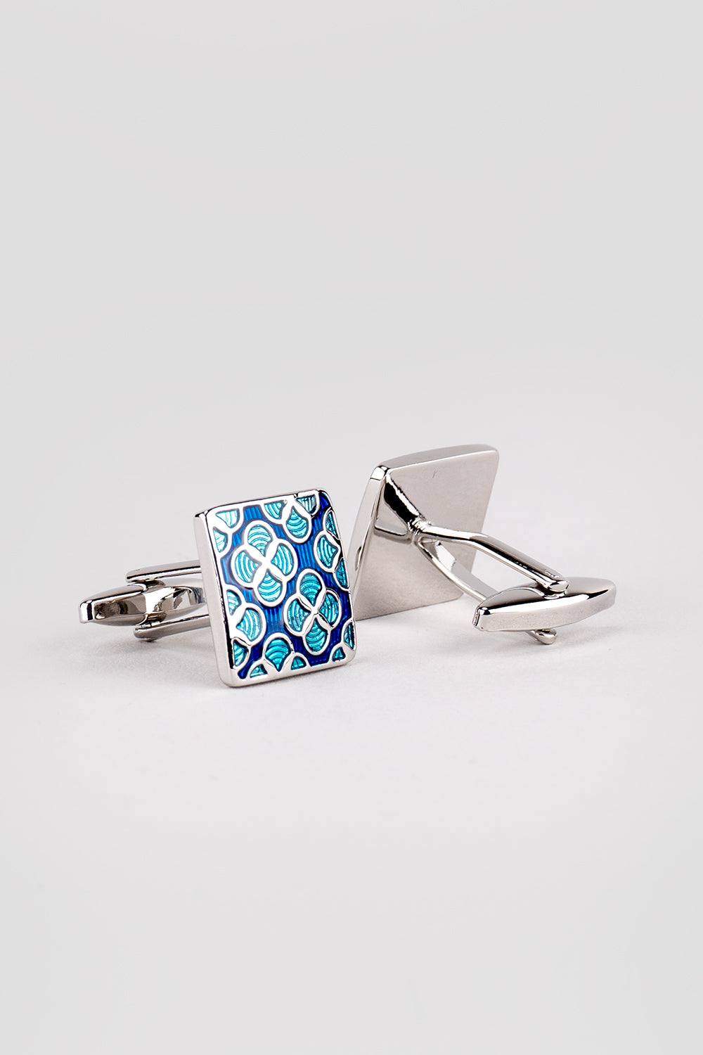 These classic Leon Blue men's cufflinks are crafted with a detailed blue geometric design and enamel finish. Perfect for the modern gentleman in formal or wedding settings, their timeless elegance adds a touch of sophistication to any ensemble.